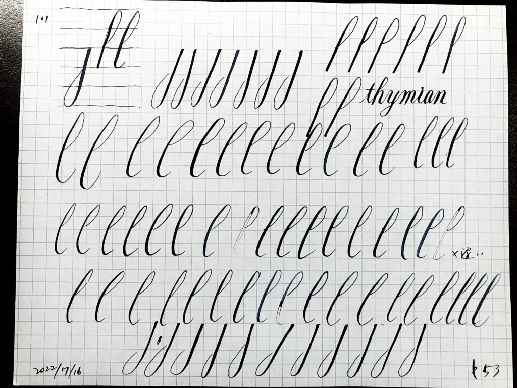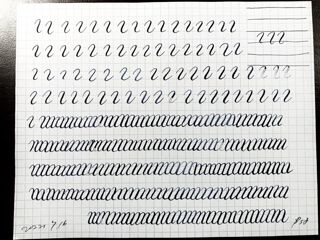 - なぜか自分の書いてみる線を見ると、エレガントさが足りない。なぜか。角度が足りない?柔らかさ?