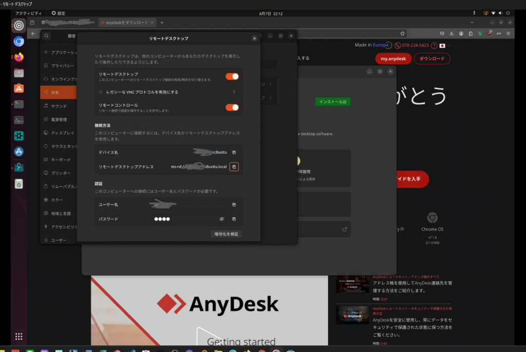 Ubuntuをラズパイ4に入れたが、使い慣れているAnydeskがインストールできなかったので、別の方法でリモートデスクトップ接続を試みた。