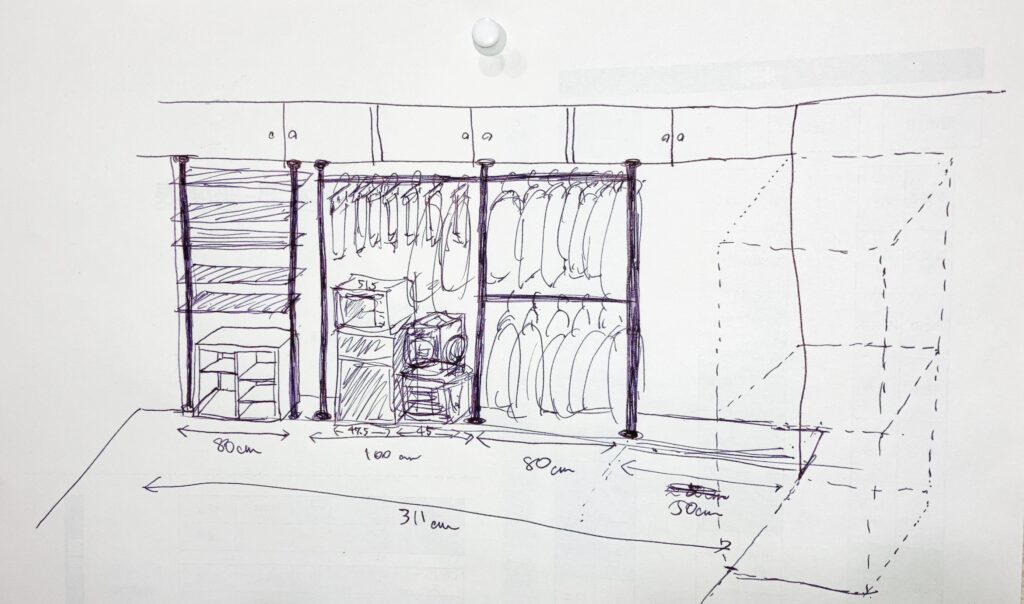 いつものように事前に絵を書いて、サイズ感の確認と配置方法を模索。